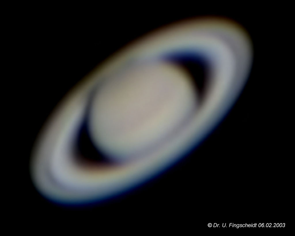 Saturn. 06.02.2003. Meade LX200GPS 12". Philips ToUcam Pro, selbst SC-modifiziert. 80 Frames, gestackt mit k3ccdtools. © Dr. U. Fingscheidt.