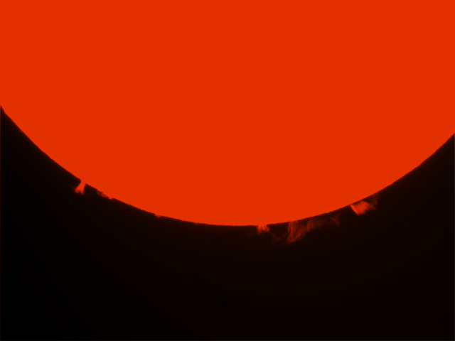Protuberanzen der Sonne am 25.05.2012 16:11 UTC.Niendorf/O. Lunt LS60T50DS/PT Tha Imaging Source DMK 21AU618.AS. © Dr. U. Fingscheidt.