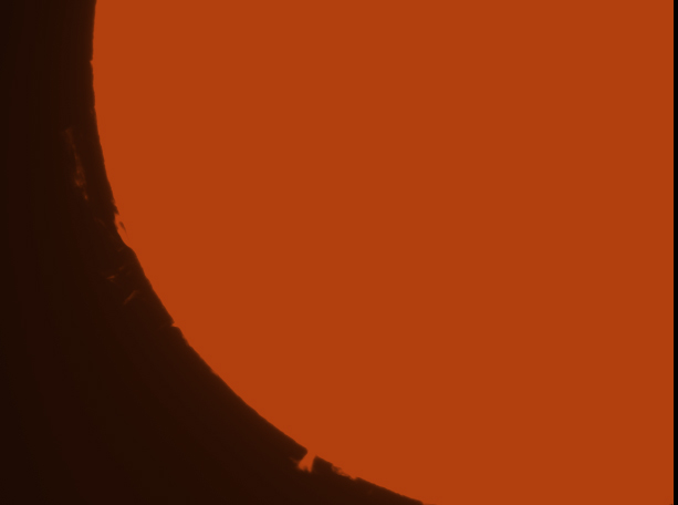 Protuberanzen der Sonne am 25.05.2012 16:12 UTC.Niendorf/O. Lunt LS60T50DS/PT Tha Imaging Source DMK 21AU618.AS. © Dr. U. Fingscheidt.